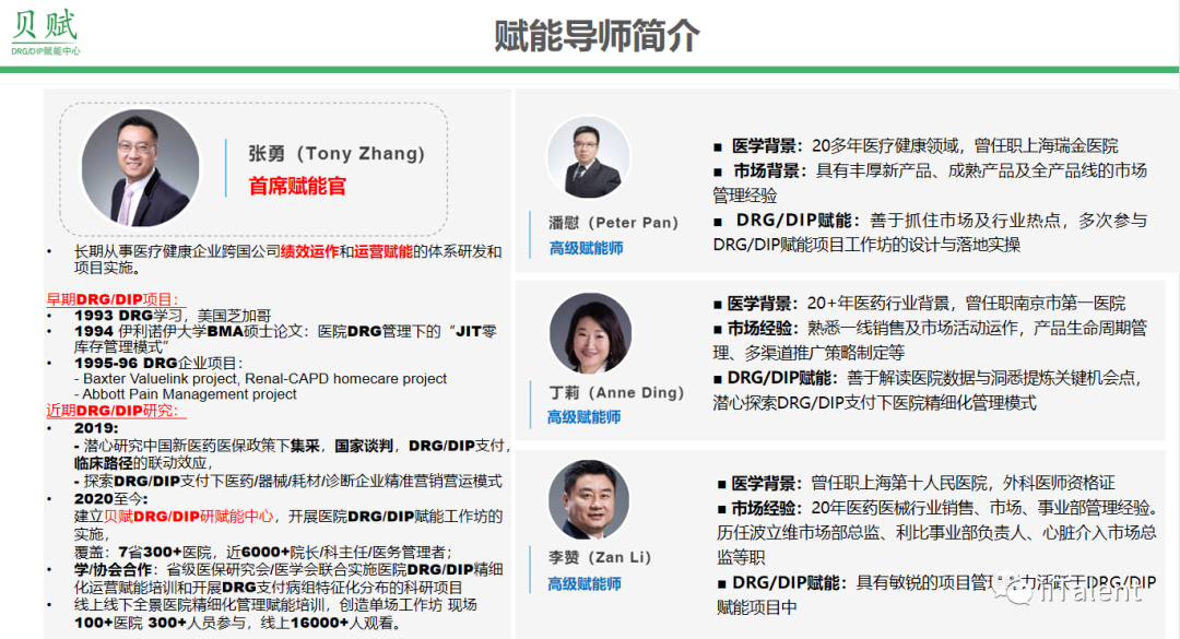 2022年2月15日,贝赋DRG/DIP赋能中心首席赋能官张勇(Tony Zhang)老师率领专业赋能导师团队,迎着国家医保局《三年行动计划》的东风,于上海再次掀起“DRG/DIP数据驱动药械创新工作坊”热潮,整一天针对药/械企业DRG赋能工作坊公开课。